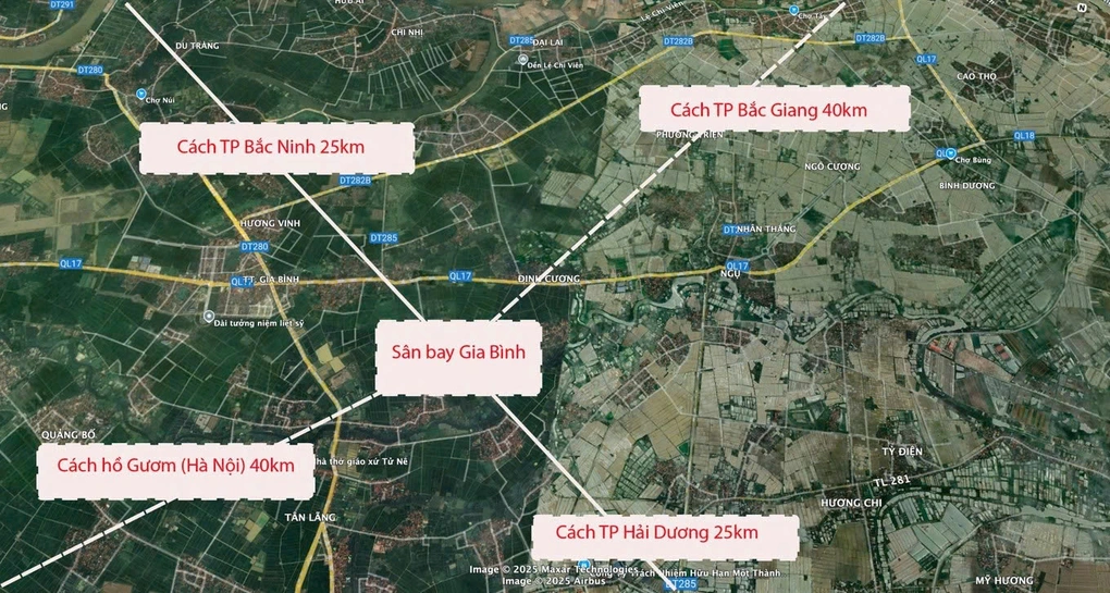 Sân bay Gia Bình ở xã Xuân Lai và thị trấn Gia Bình (huyện Gia Bình, tỉnh Bắc Ninh) được khởi công tháng 12/2024. Sân bay rộng 125ha, dự kiến hoàn thành cuối năm 2025.