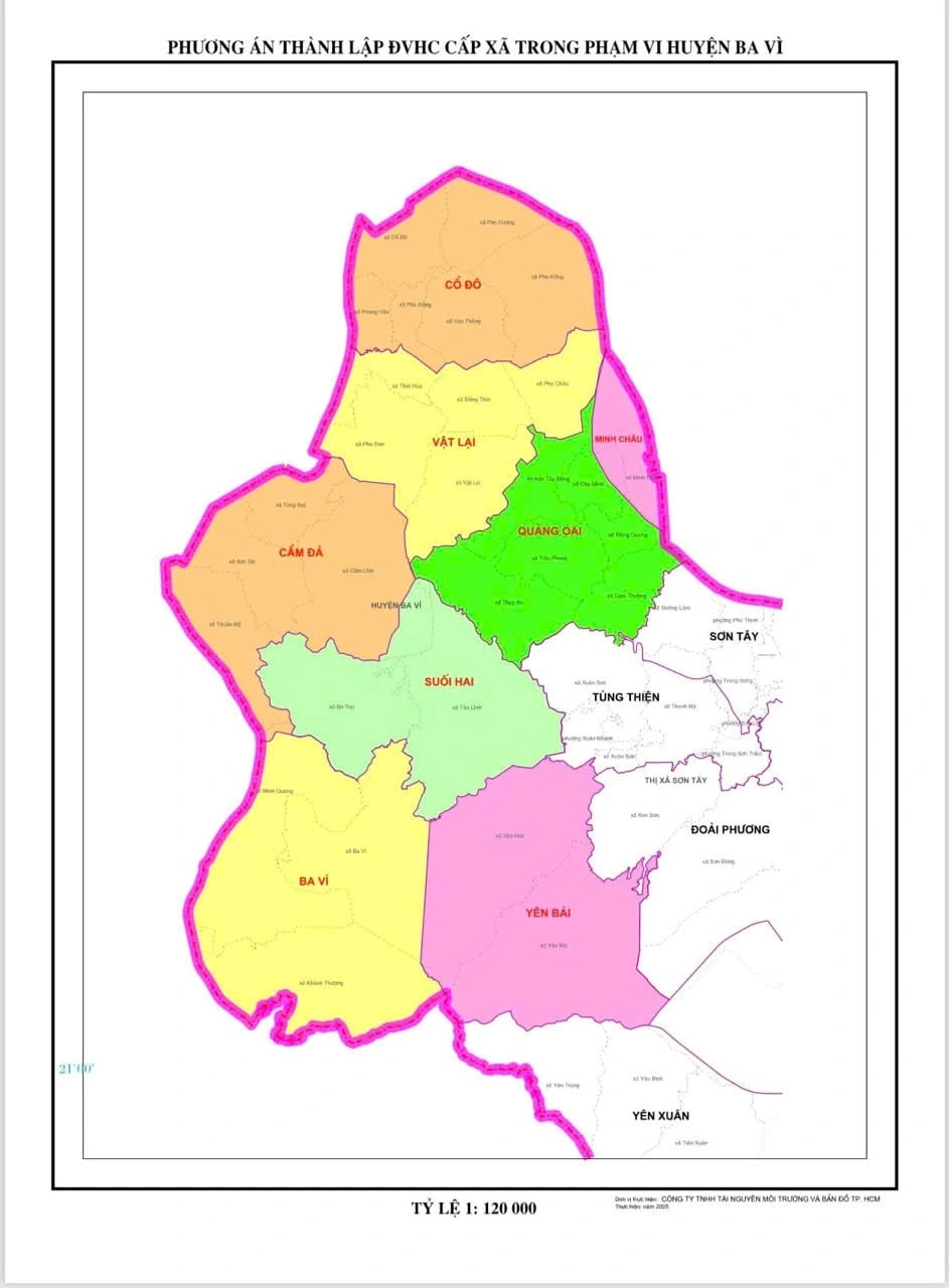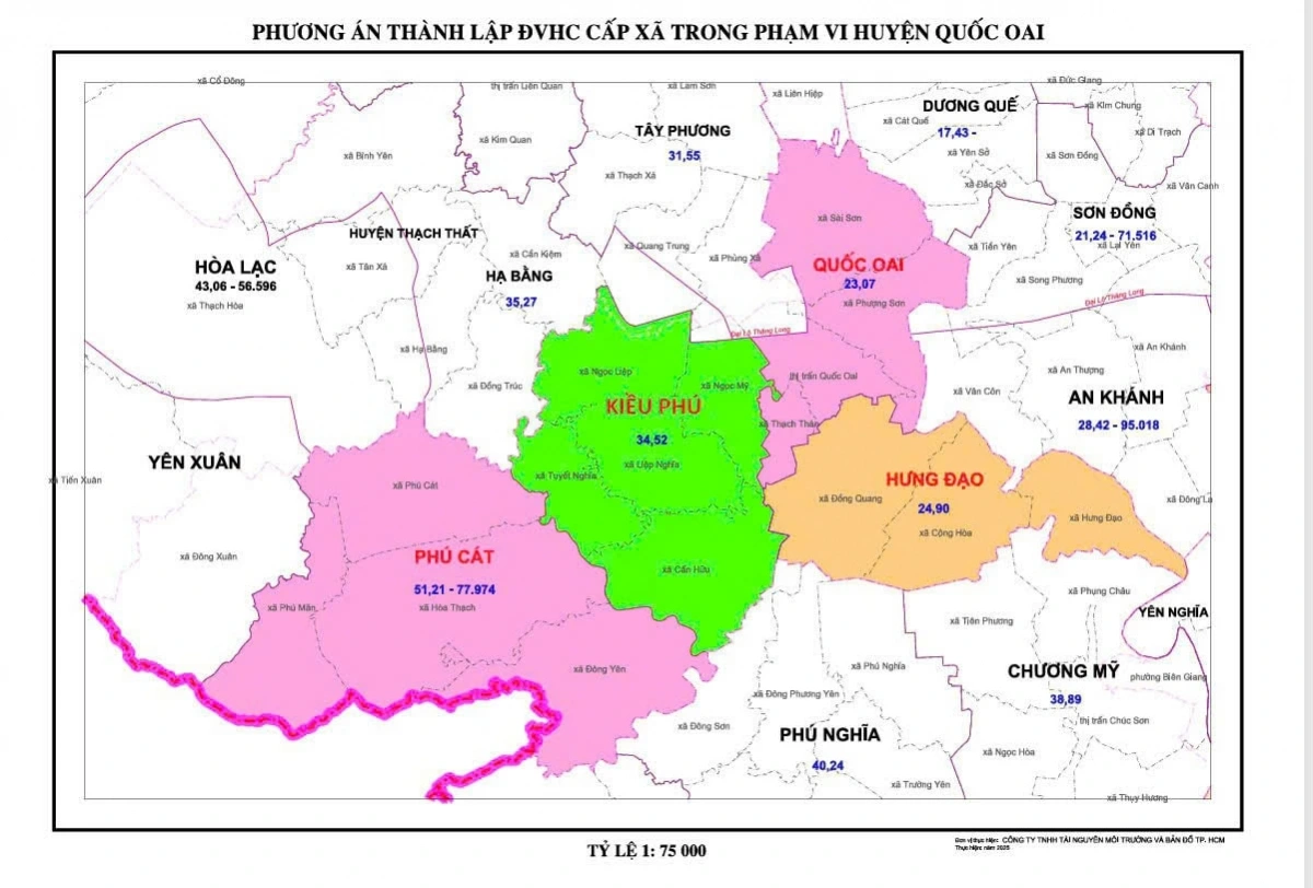 Bản đồ đơn vị hành chính cấp xã mới thành lập thuộc huyện Quốc Oai và Ba Vì