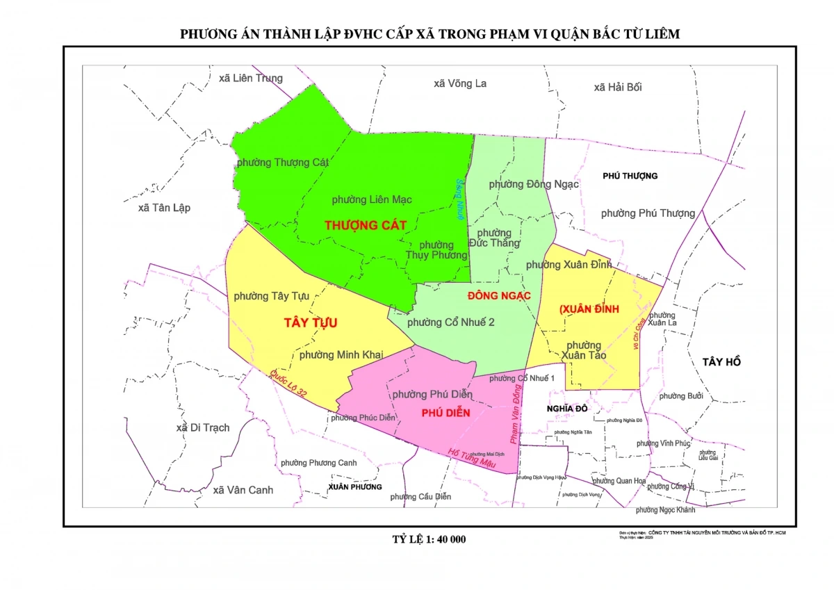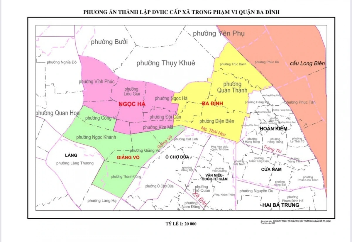 Bản đồ đơn vị hành chính cấp phường mới thành lập thuộc quận Ba Đình và Bắc Từ Liêm