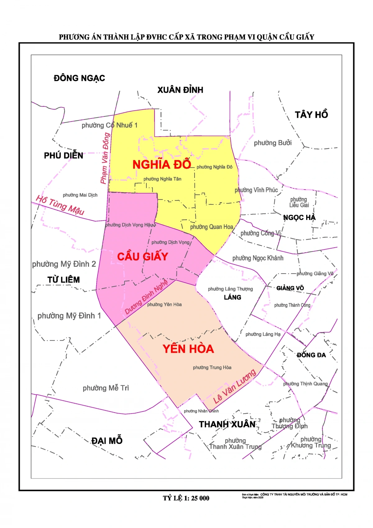 Bản đồ đơn vị hành chính cấp phường mới thành lập thuộc quận Cầu Giấy và Hoàn Kiếm