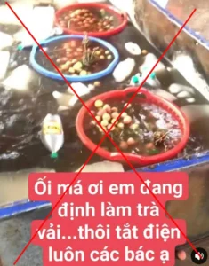 Mới đây, một tài khoản trên mạng xã hội đăng tải đoạn video ghi lại cảnh một nhóm công nhân rửa từng chùm vải trong thùng nước đá kèm theo dòng chữ: “Ôi má ơi, em đang định làm trà vải… thôi tắt điện”.