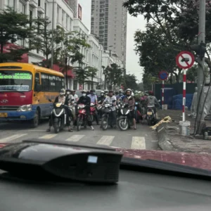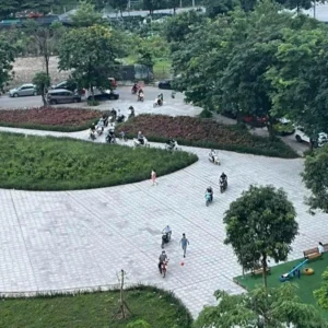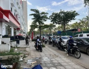 “Phương tiện đủ loại tràn qua đường nội khu bao gồm cả xe tải lớn, xe khách 45 chỗ và lượng lớn xe máy. Nhiều xe còn lao lên vỉa hè, xuyên qua vườn hoa, sân chơi – vốn là khu vực dành cho trẻ em, người già đi bộ… rất nguy hiểm. Từ ngày tổ chức phân luồng làm nút giao, tôi rất sợ cho trẻ con xuống sân vui chơi”, chị Dung nói.