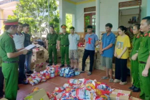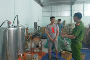 Sau thời gian theo dõi, ngày 8/8, 2 tổ trinh sát Công an huyện Vĩnh Lộc đột kích vào tổng kho Đông Hưng của Lê Tuấn Thành (SN 1995, xã Tế Nông, huyện Nông Cống) và cơ sở sản xuất của Lê Hạ Tuấn (SN 1995, xã Tân Phúc, huyện Nông Cống) làm chủ.