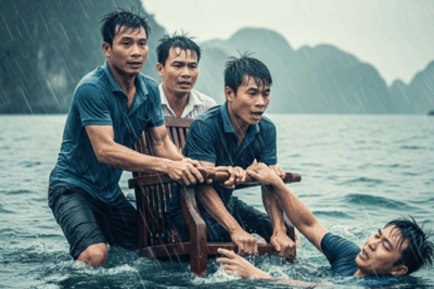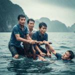 Nghệ An quê choa: Chỉ huy trưởng buộc dây vào người giải cứu 5 người dân m;ắc k;ẹt giữa dòng nước lũ