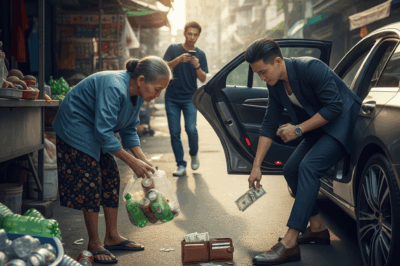 Sáng sớm ở góc chợ nhỏ, một bà cụ lom khom nhặt từng chai nhựa, lon bia trong đống rác…
