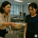 Không dừng lại ở đó, anh ta vung tay, giáng một cú tát vào cây lau nhà, khiến nó đổ kềnh ra sàn. Cô gái dọn vệ sinh chỉ biết cúi đầu, không dám nói gì, lắp bắp xin lỗi. Mọi người trong phòng chờ đều im lặng, ánh mắt nhìn về phía giám đốc với sự ngỡ ngàng. Không ai dám lên tiếng, chỉ có âm thanh ầm ĩ của anh ta vẫn vang vọng trong không khí.